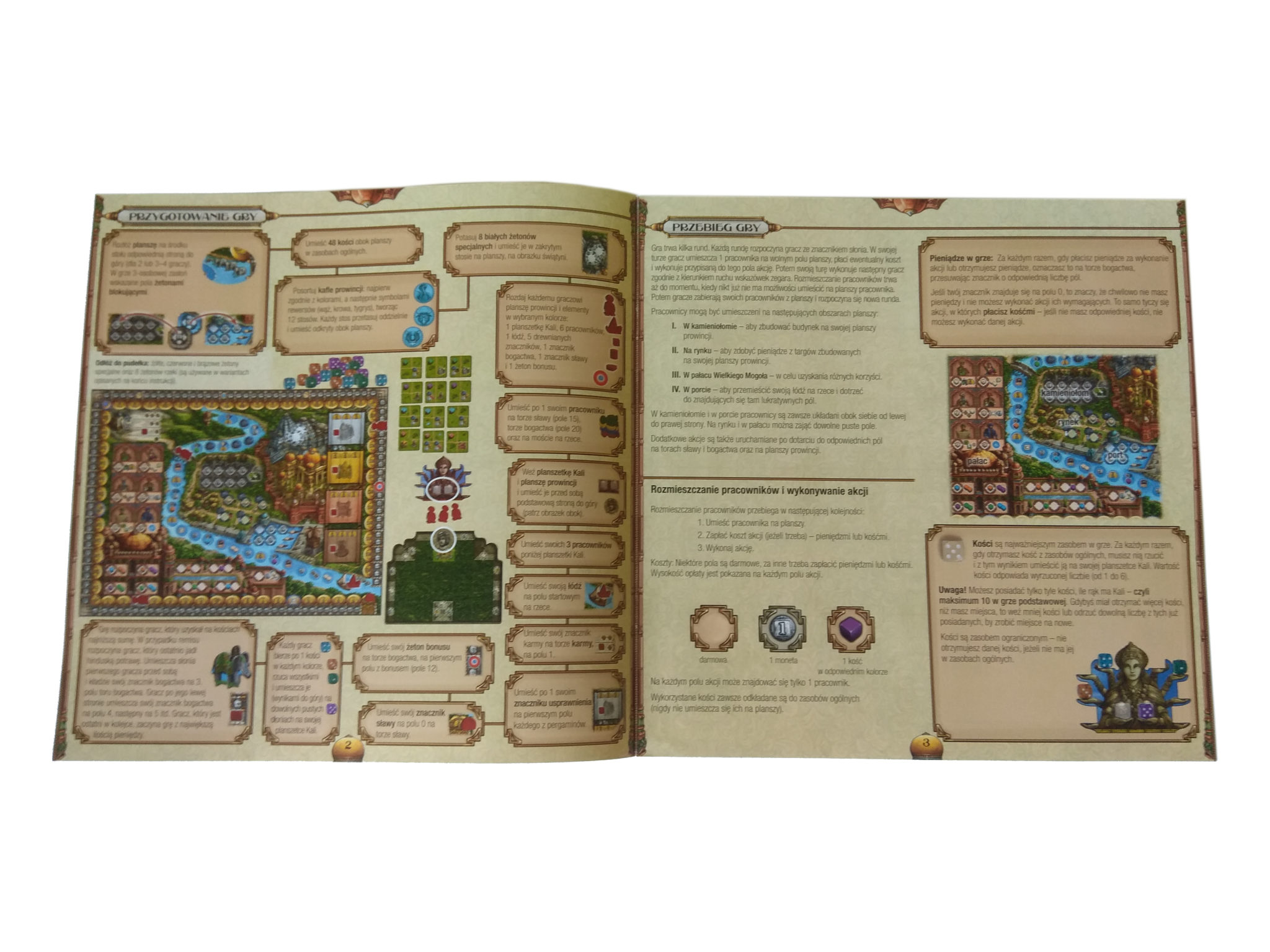 Ganges to pięknie wykonana eurogra o złożonych, ale łatwych do wytłumaczenia zasadach. Gracze wcielają się w radżów, którzy rywalizują o sławę i bogactwo. Wysyłają swoich pracowników na różne pola akcji, aby zdobyć pieniądze i kości, które posłużą im do rozbudowy własnych prowincji.
