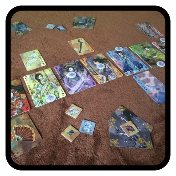 Gejsze to bardzo prosta, a zarazem wymagająca gra karciana. Gra nie posiada wielu elementów, ale można z niej wycisnąć bardzo wiele. Naprzemiennie gracze wykonują tury, z czego można wykorzystać tylko jedną akcje na turę. Ta opcja daje nam wiele możliwości główkowania i rozkminiania! Trzeba wejść do głowy naszego przeciwnika i spróbować wymyślić jakie prezenty chowa przy sobie. On ma inny pogląd na sytuacje i potrzebuje innych, może lepszych Gejsz, dlatego trzeba dobrze planować swój każdy ruch. Gra oferuje nam dwa sposoby zwycięstwa, co znacząco poprawia czas rozgrywki. Każda rozgrywana przez nas gra nie trwała więcej niż pudełkowe 20 minut. Sposób rozgrywki świetnie przemyślany, a gra, mimo swej prostoty, zyskuje moją sympatię.