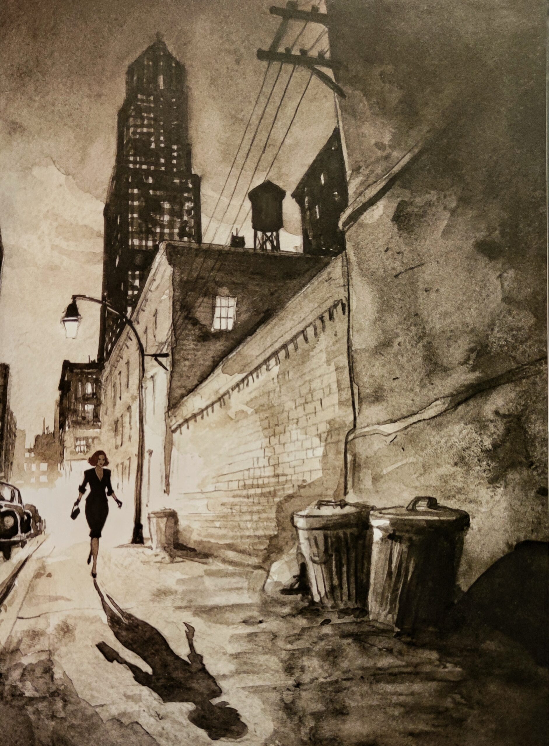 Noir burlesque to bardzo czarny kryminał na wielu płaszczyznach. Marini czerpie garściami z klasycznych wzorców gatunku. Mroczny, twardy główny bohater, piękna femme fatale, wszechmocny wręcz mafijny boss i policjant próbujący ugrać coś dla siebie. Do tego romans w tle i tętniące erotyzmem komiksowe kadry. Wszystko to utrzymane w bardzo ciemnej, opartej o odcienie brązu kolorystyce, która dodatkowo buduje klimat tej historii. A pojawiające się momentami plamy czerwieni jeszcze to wszystko podkręcają.