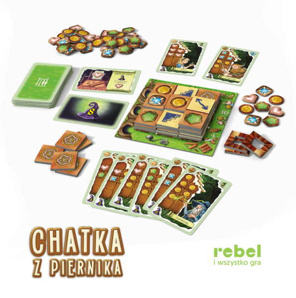 Chatka z piernika to gra prostych zasad i wielu możliwości. Podczas zabawy będziecie wcielać się w wiedźmy budujące domki i kuszące baśniowych bohaterów kolorowymi ciastkami. Warto umiejętnie planować swoje poczynania, bo punkty zdobywa się zarówno za postaci, które skuszą się na nasze pierniki, jak i za ukończone kondygnacje chatki.