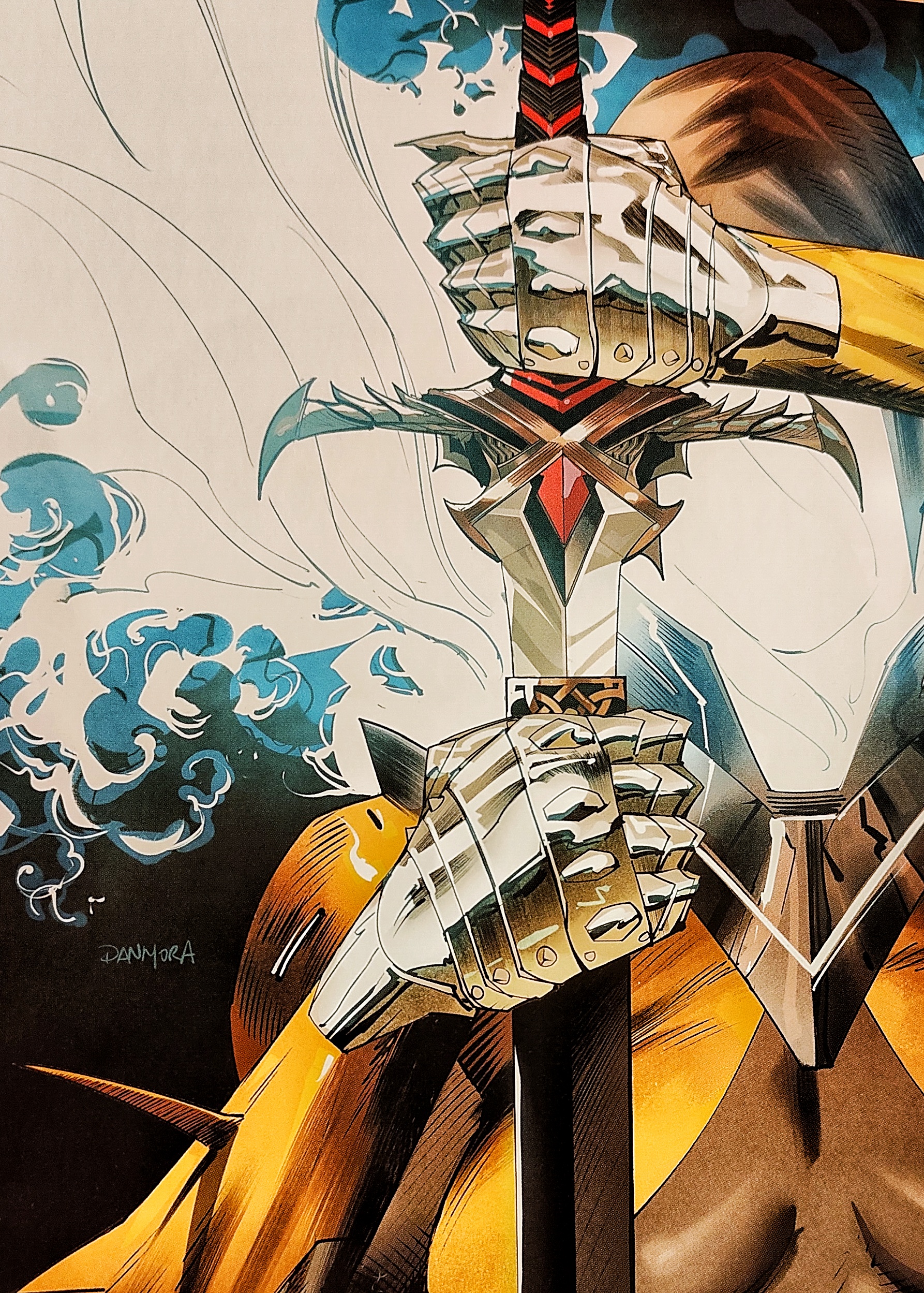Ale. Tak jest jedno, ale. Owszem fabuła jest znakomita. Jednak to rysunki Dana Mory powodują, ze dla mnie ta seria jest naprawdę wybitna. Świetne, dynamiczne kadry. Kreska która pieści oczy. Oraz wyobraźnia, która wydaje się nie mieć granic. Ten rysownik to jeden z najlepszych jakich dane mi było oglądać. W czwartym tomie mamy trzech Arturów i każdy z nich jest z jednej strony zupełnie inny, a z drugiej spójny z całością. Dan mnie naprawdę zachwyca, kocham oglądać jego twórczość.
