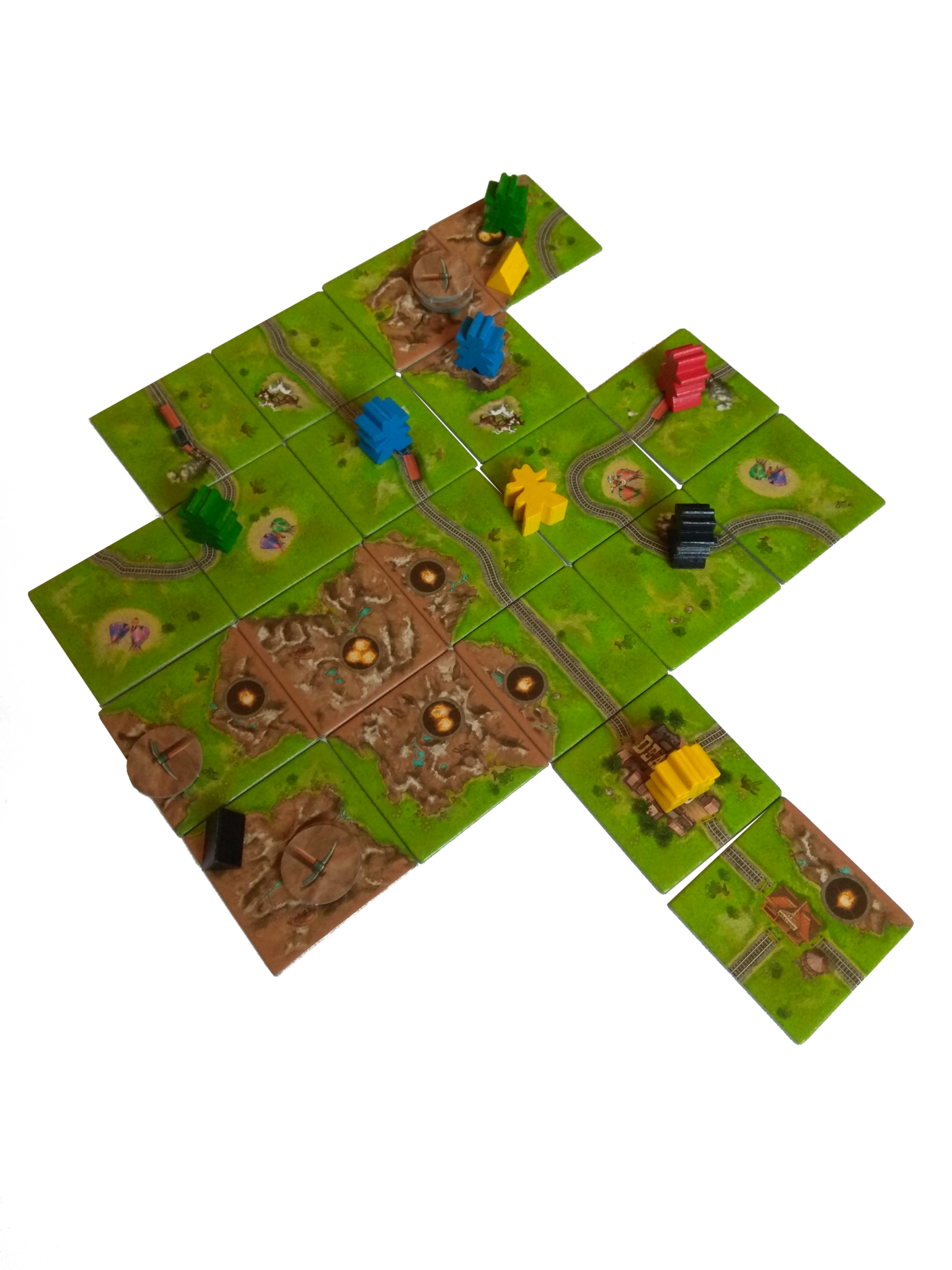 - Carcassonne: Gorączka złota – jest grą mniej pozbawioną losowości. Samo losowanie kafelków jest dość losowe, a ponadto samorodki dobiera się nie znając wartości. Możemy mieć więcej żetonów złota, a mniej punktów. Wracając do kafelków – potrzebujemy wylosować kafelek symbolizujący górę, a ciągle trafiamy tory czy miasta.